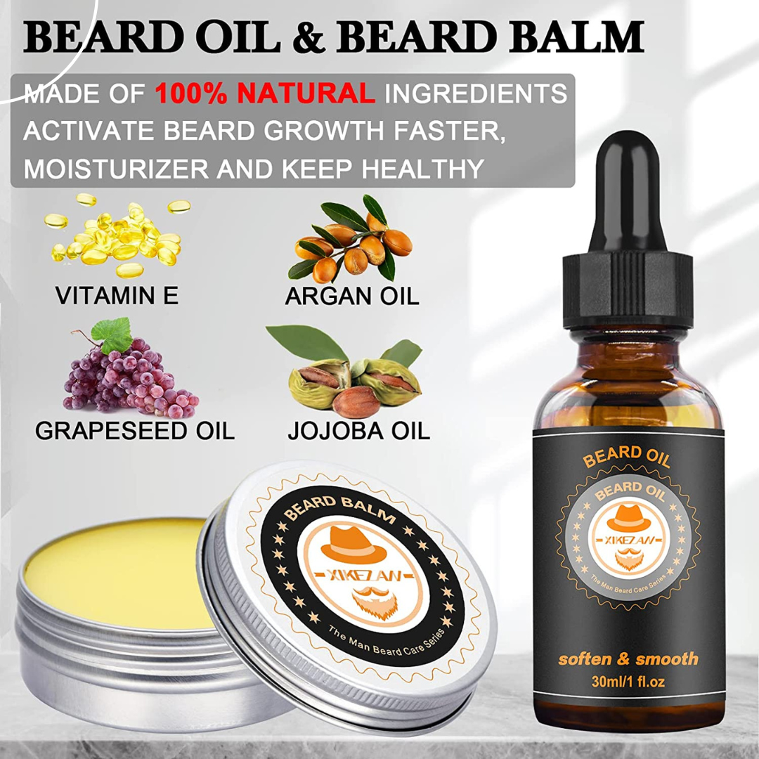 - Beard Oil and Balm - Formulated to softens beard and conditions skin,restore softness & shine to your beard, trap essential vitamins & minerals into the facial hair for long term nourishment,helps make your beard grow faster & look thicker.