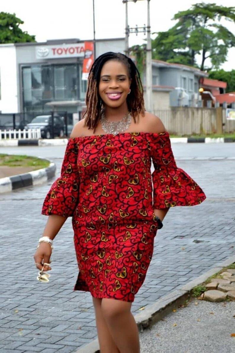Bolu African off the shoulder dress / African print dress for women / Ankara short dressMade to order |