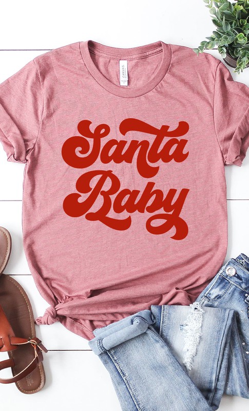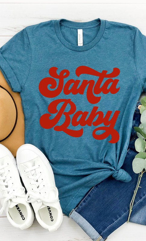 Santa Baby Graphic Tee. Most t-shirt colors are 52/48 Airlume combed and ringspun cotton/polyester, Athletic Heather & Black Heather are 90/10 airlume combed and ringspun cotton/polyester. White, cream, canvas red, lilac, mint are 100% cotton. Ash is 99/1 |