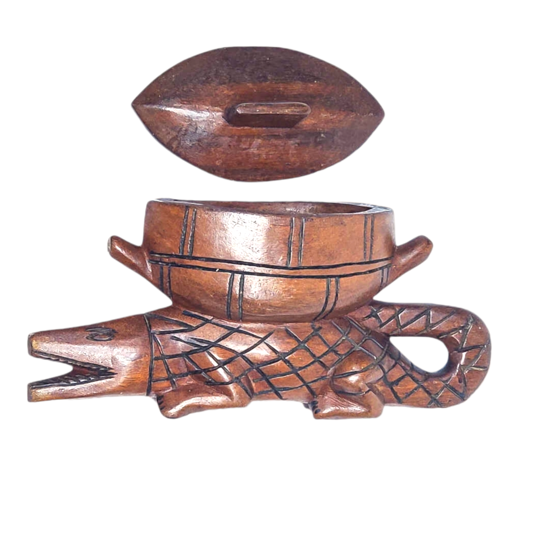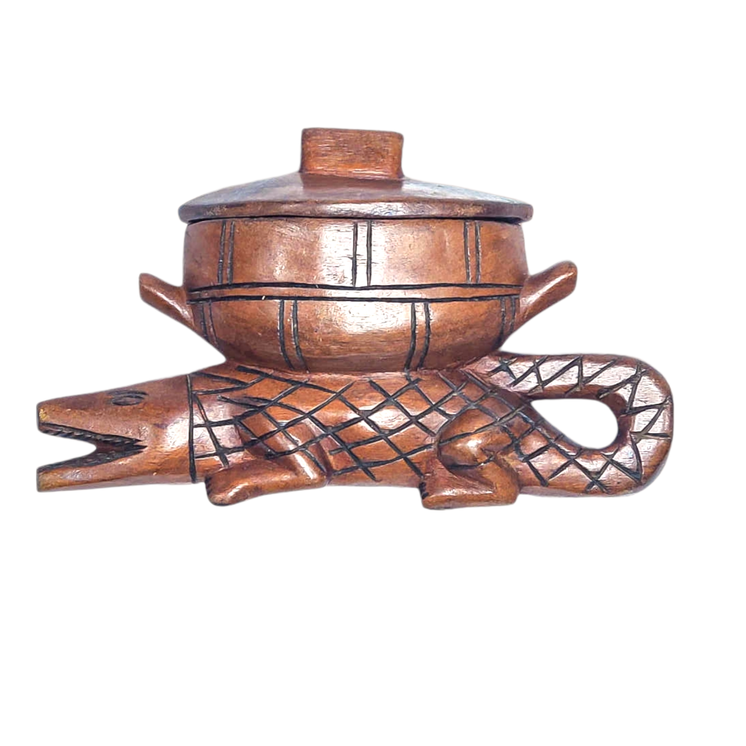 Wooden African Gator With Pot | Africa Decor | Africa Gift | Africa Handmade Rustic | Africa Art for hallways, living rooms, dining area, Made in Liberia