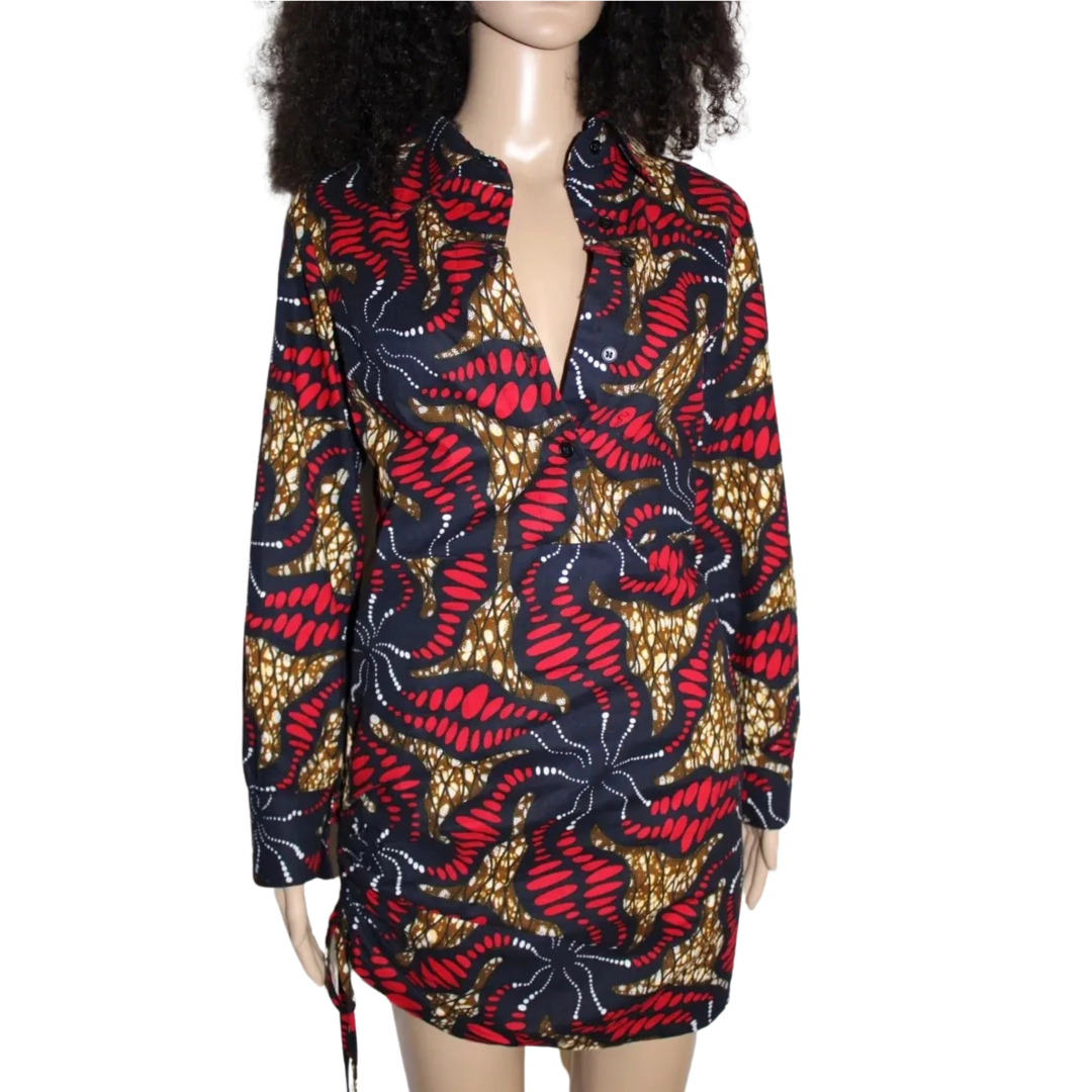 A unique design that fits loose to accentuate the waistline. The pairing print gives the shirtdress a modern look and makes it suitable as a casual wear or for an evening out |